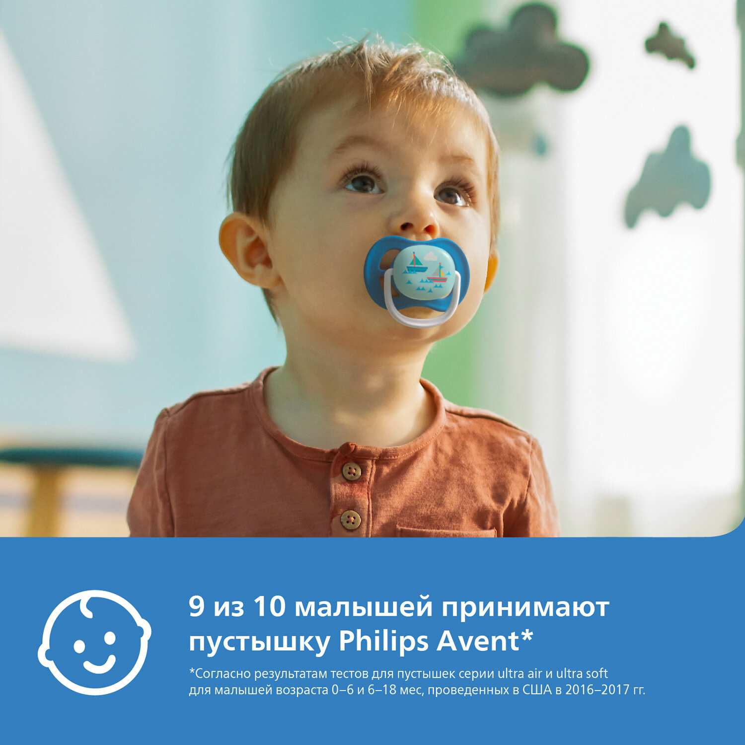 Пустышка силиконовая ортодонтическая Philips AVENT Ultra Air SCF080/15 6-18 м, 2 шт, голубой