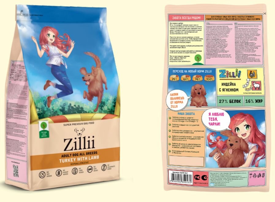 ZILLII Adult Dog Сухой корм для взрослых собак Индейка/Ягнёнок 15кг