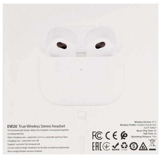 Беспроводные Bluetooth-наушники Hoco TWS EW20, с микрофоном, цвет белый, 1 шт