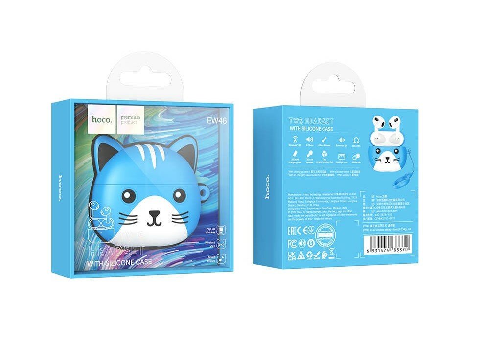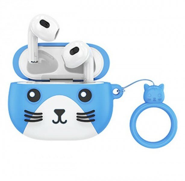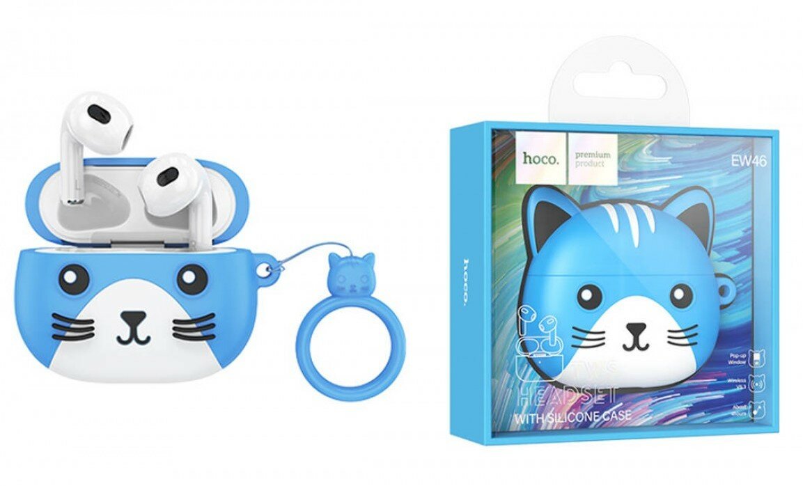 Беспроводные TWS-наушники Hoco EW46 в чехле "котик", синие