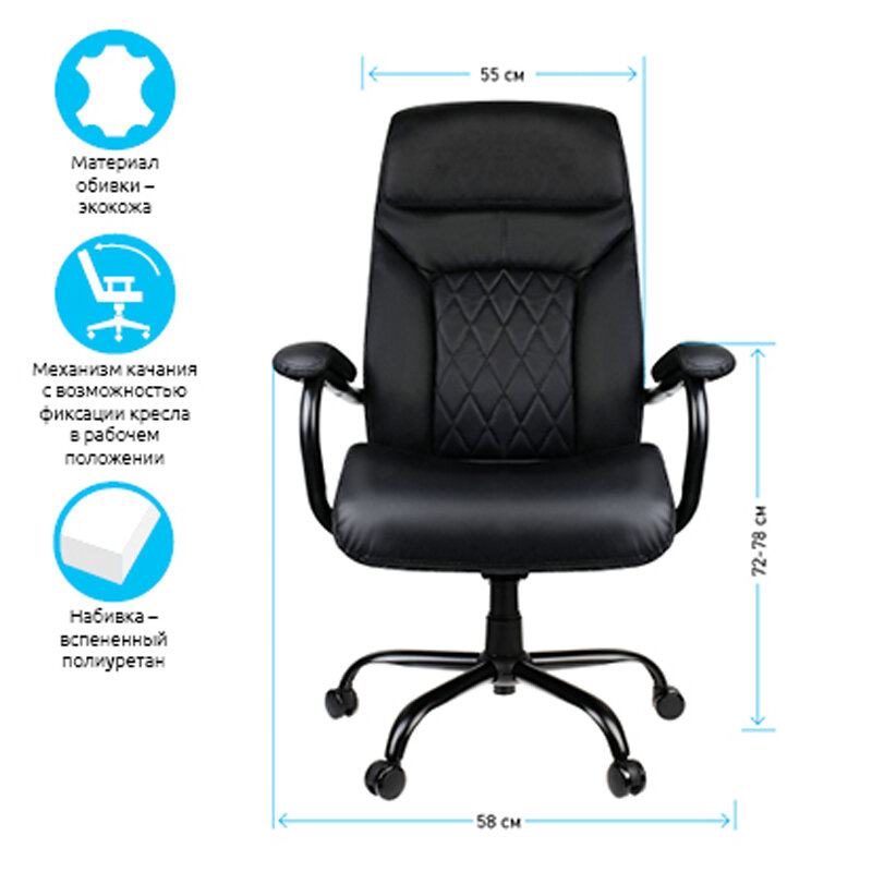 Кресло руководителя Helmi HL-ES09 "Armor", повышенной прочности, экокожа черная, до 250 кг 323008 интересное: