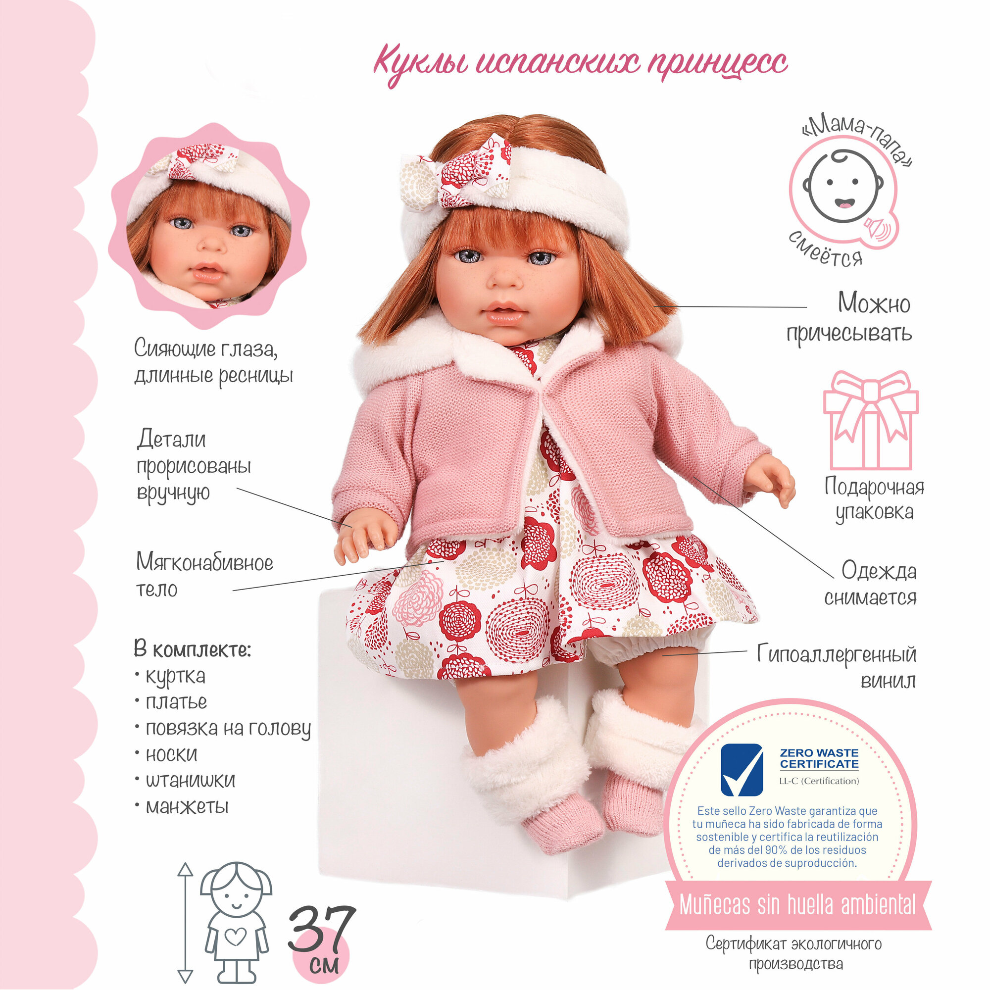 1561P Кукла Валентина в розовом озвученная (мама, папа, смех), 37 см