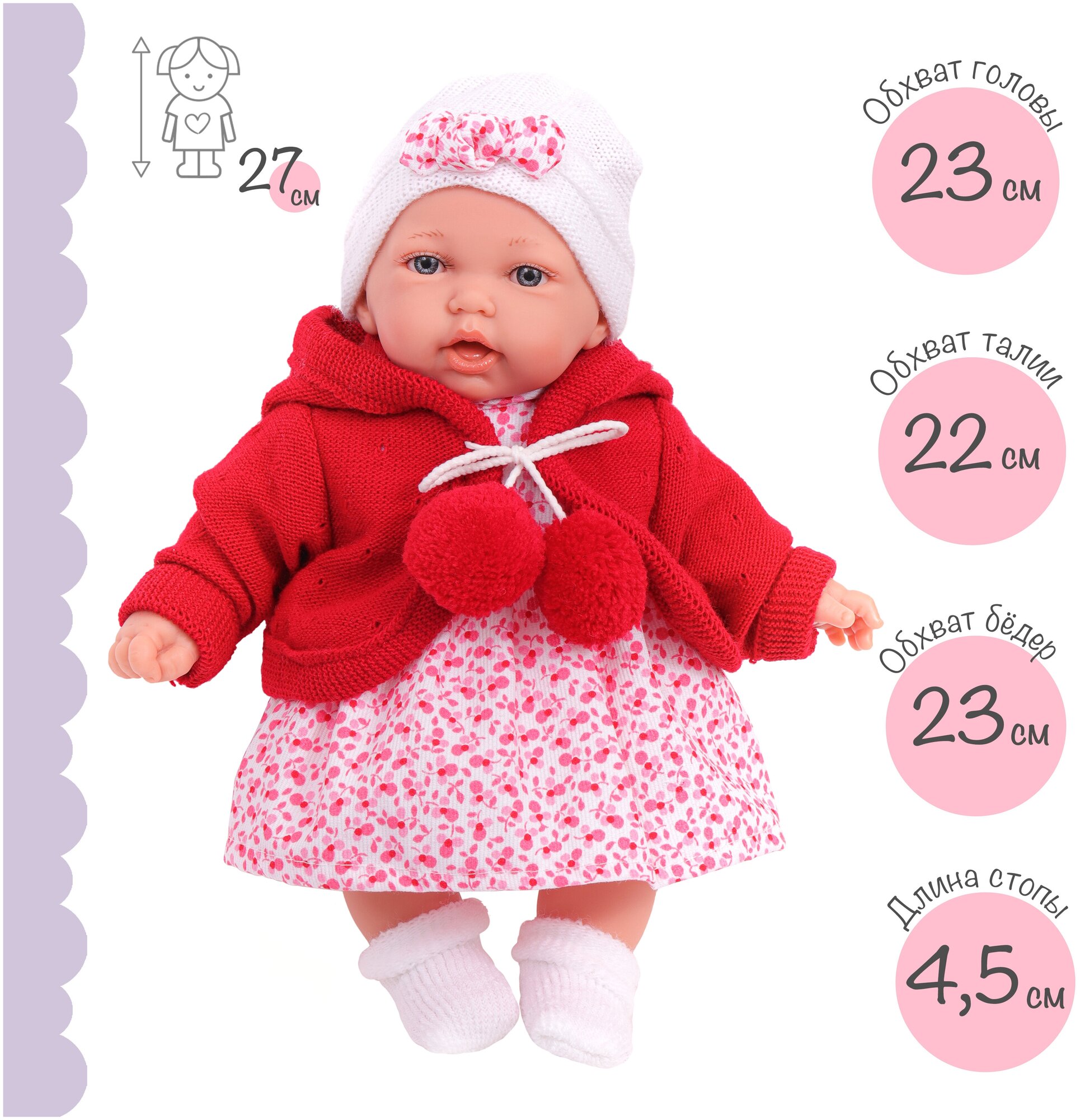 Кукла озвученная Antonio Juan Азалия в красном, 27 см, говорит, смеется, мягконабивная