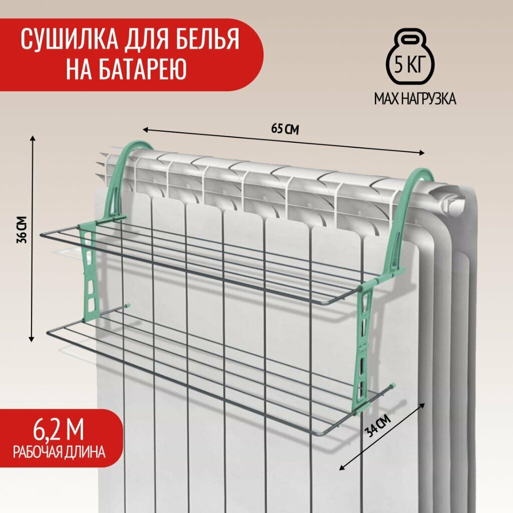 | Плюсы: | На батарее сидит замечательно , заменяет собой половину стандартной сушилки. Можно всю мелочевку за раз перестирать и через час уже всё сухое, от батареи моментально сохнет |