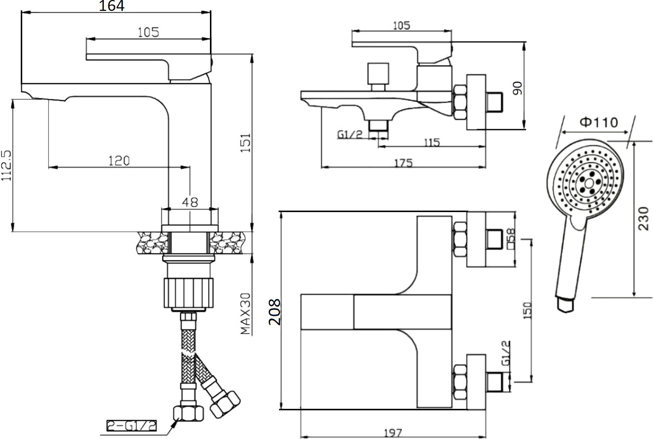 Комплект смесителей Orange Lutz черный (M04-311b)