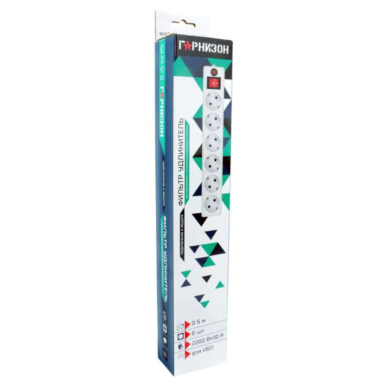 Cетевой фильтр (stabilizer) Гарнизон, 0,5 м 6 розеток белый. для UPS, ЕНW-0