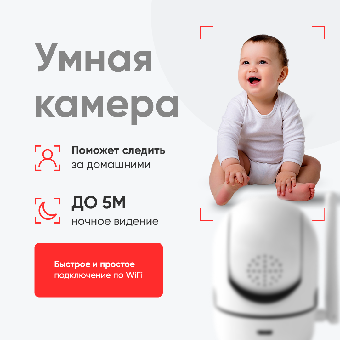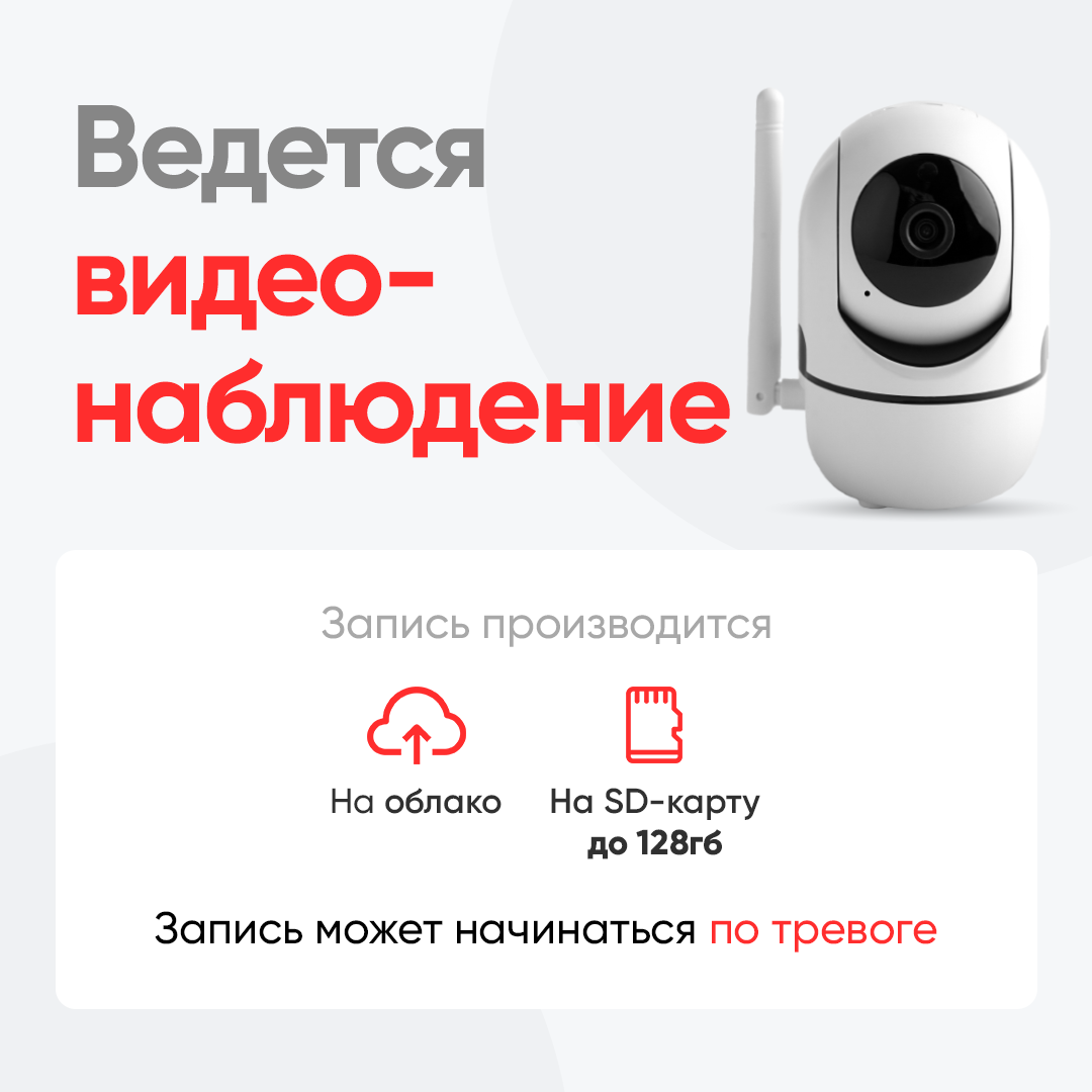 IP-камера видеонаблюдения Wi-Fi для дома с обзором 360 градусов белая