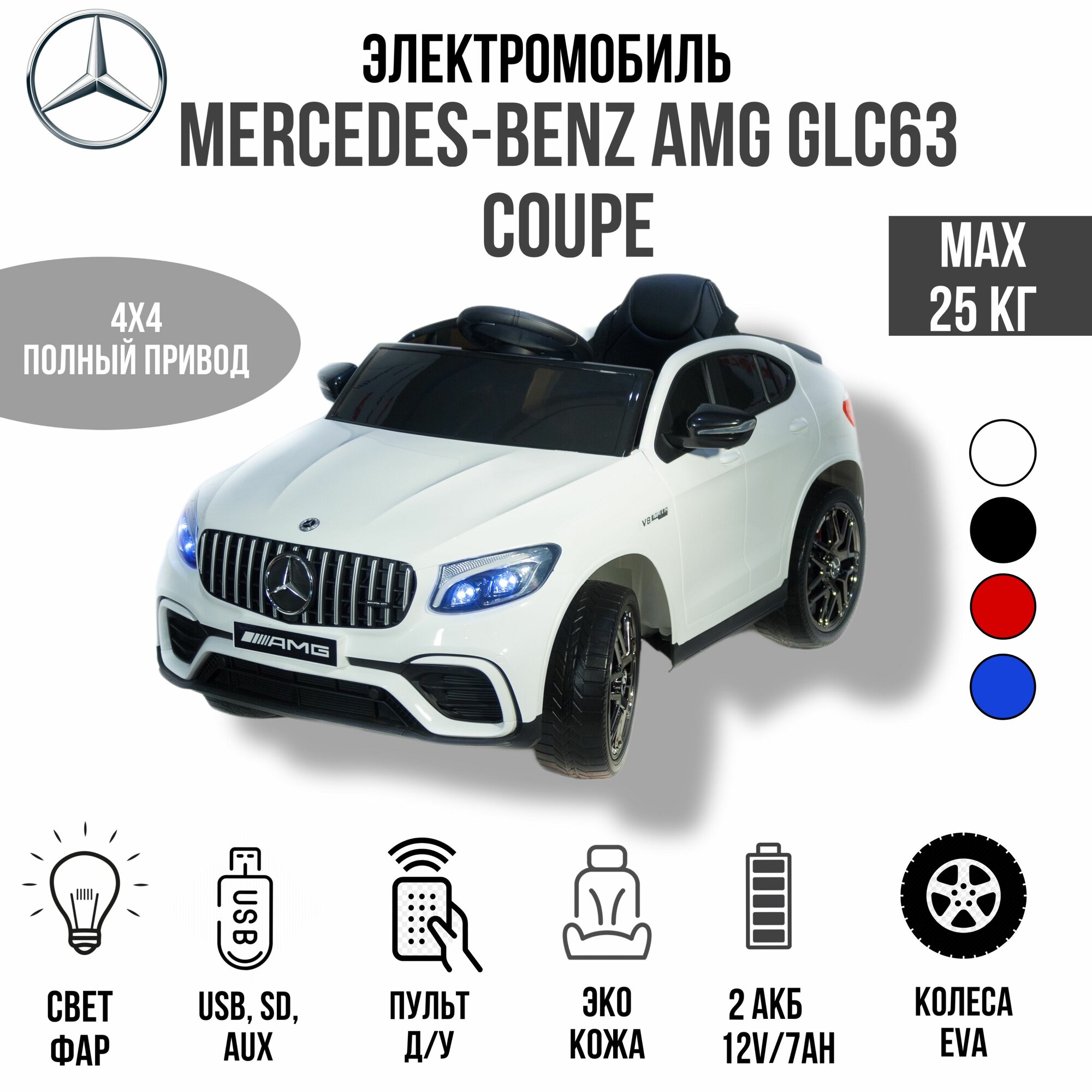 Электромобиль Toyland Mercedes-Benz GLC63 S Coupe 4WD (QLS-5688), Белый