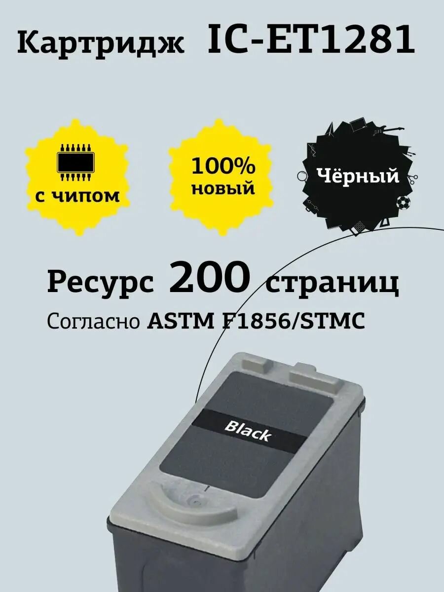 Струйный картридж T2 IC-ET1281 (C13T12814011/T1281/Stylus S22/SX125/SX130) для принтеров Epson, черный
