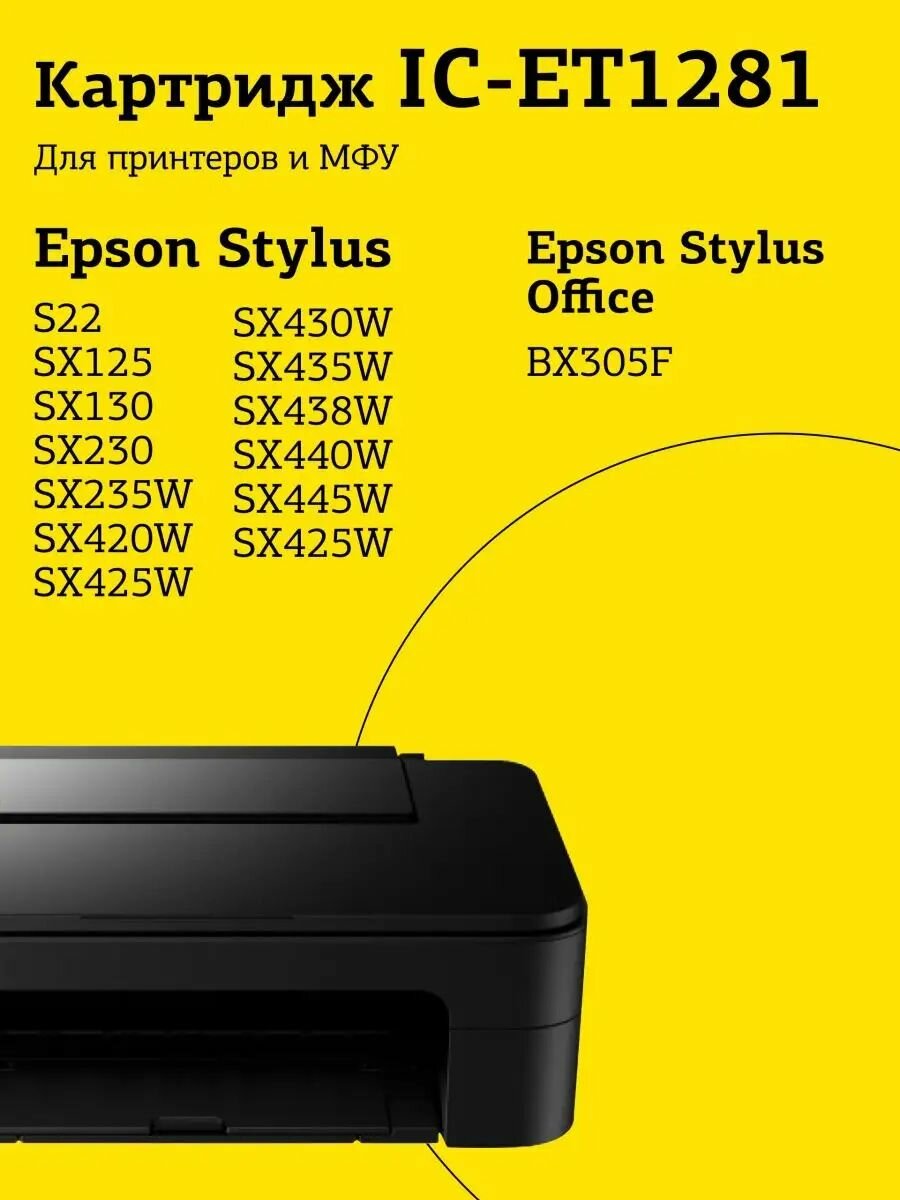 IC-ET1281 Картридж для Epson Stylus S22/SX125/SX130/SX230/SX420W/Office BX305F, черный, с чипом