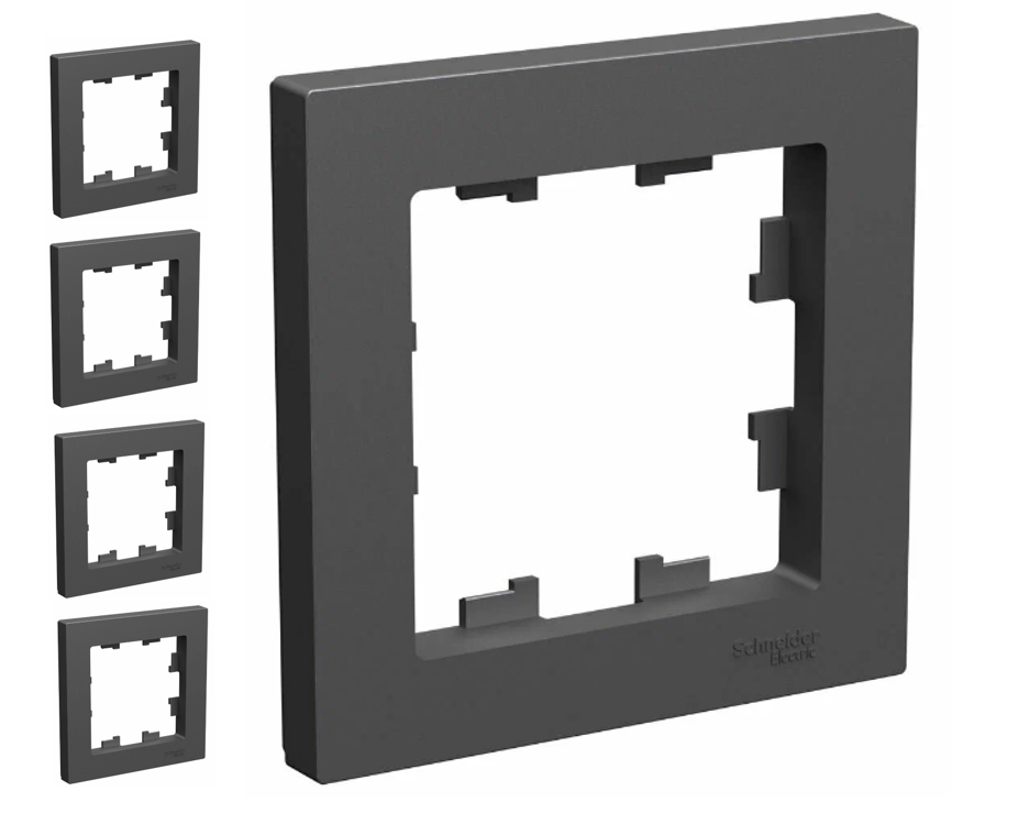 Купить Рамка 1-постовая, универсальная, Schneider Electric/Systeme Electric AtlasDesign, карбон(чёрный матовый) ATN001001 (комплект 5 шт.)