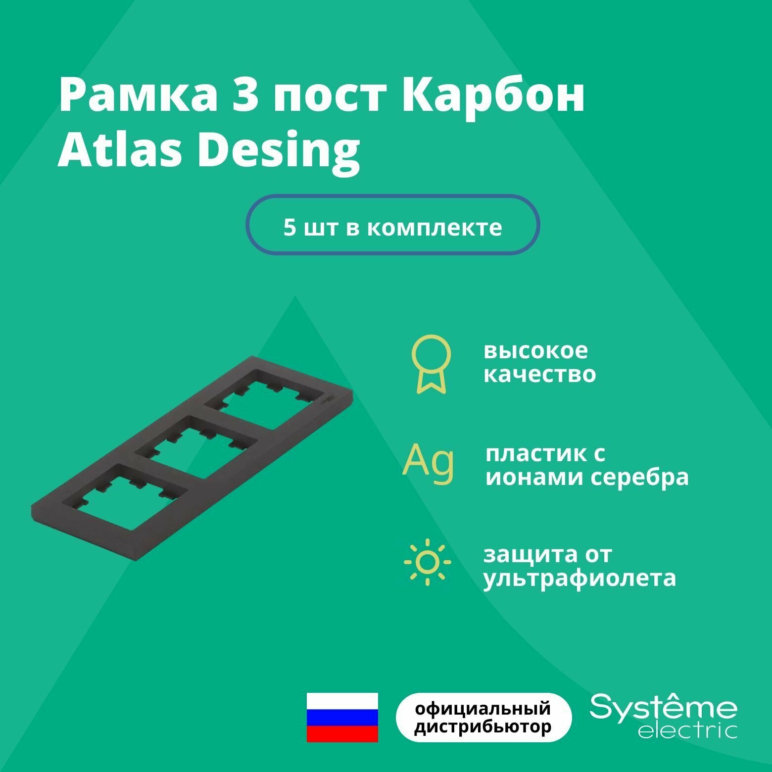 Рамка Systeme Electric Atlas Design тройная для розеток и выключателей черный матовый-карбон - 5 шт.