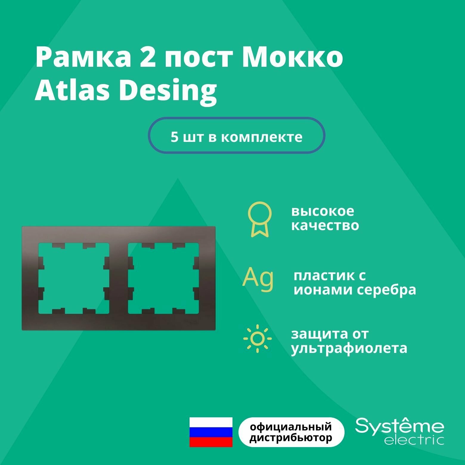 Рамка Systeme Electric Atlas Design двойная для розеток и выключателей мокко ATN000602 - 3 шт.