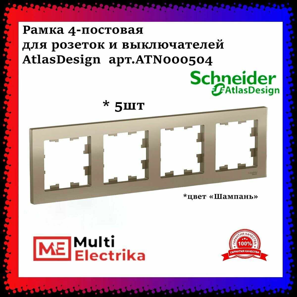 Купить Рамка 4-м ATLAS DESIGN универс. шампань SchE ATN000504 (упаковка 5 шт.)