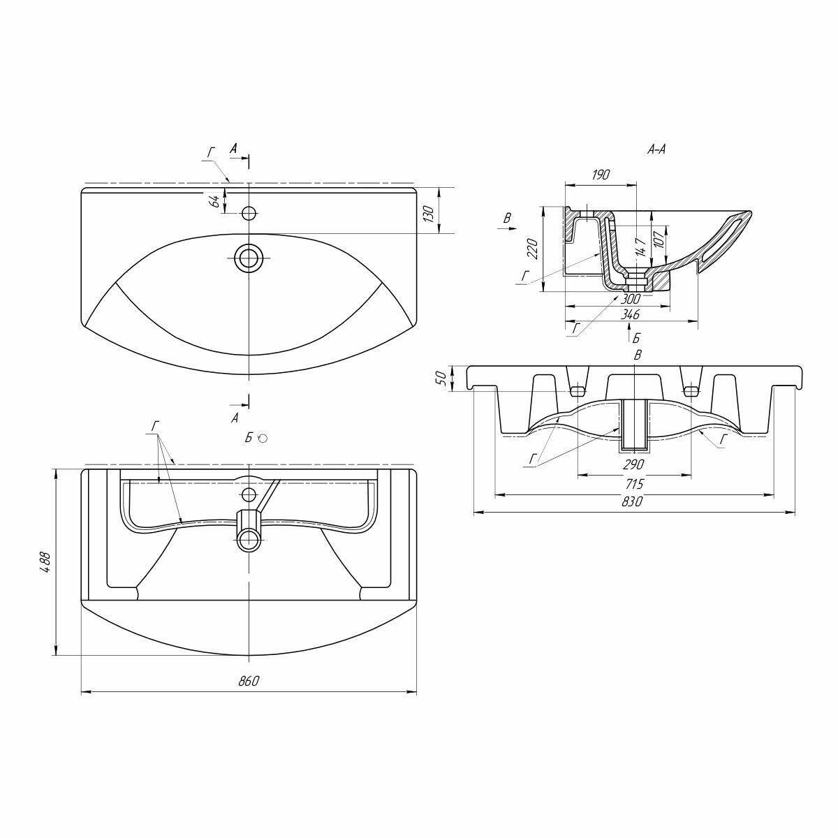 | Расположение отверстия под смеситель | в центре |