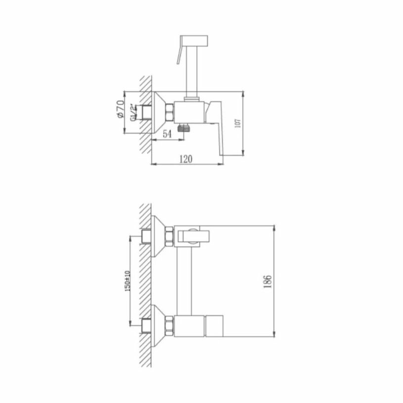 Смеситель для гигиенического душа HAIBA HB5510 / настенный , холодная и горячая вода, латунь, хром глянец