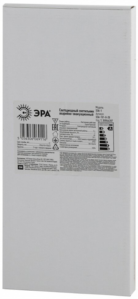 Купить Аварийный светильник ЭРА SSA-101-0-20 светодиодный 3ч 3Вт без текста стикер 358х145 мм арт. Б0044387 (1 шт.)