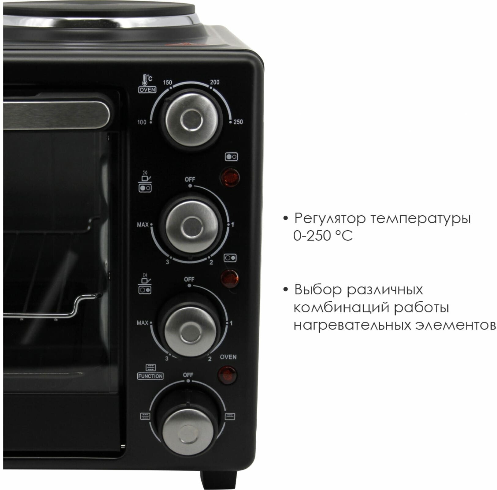 Печь электрическая Atlanta ATH-1410 (black) / 30 литров / варочная поверхность / 0-250 С / мини печь / печка / настольная / 3200 Вт