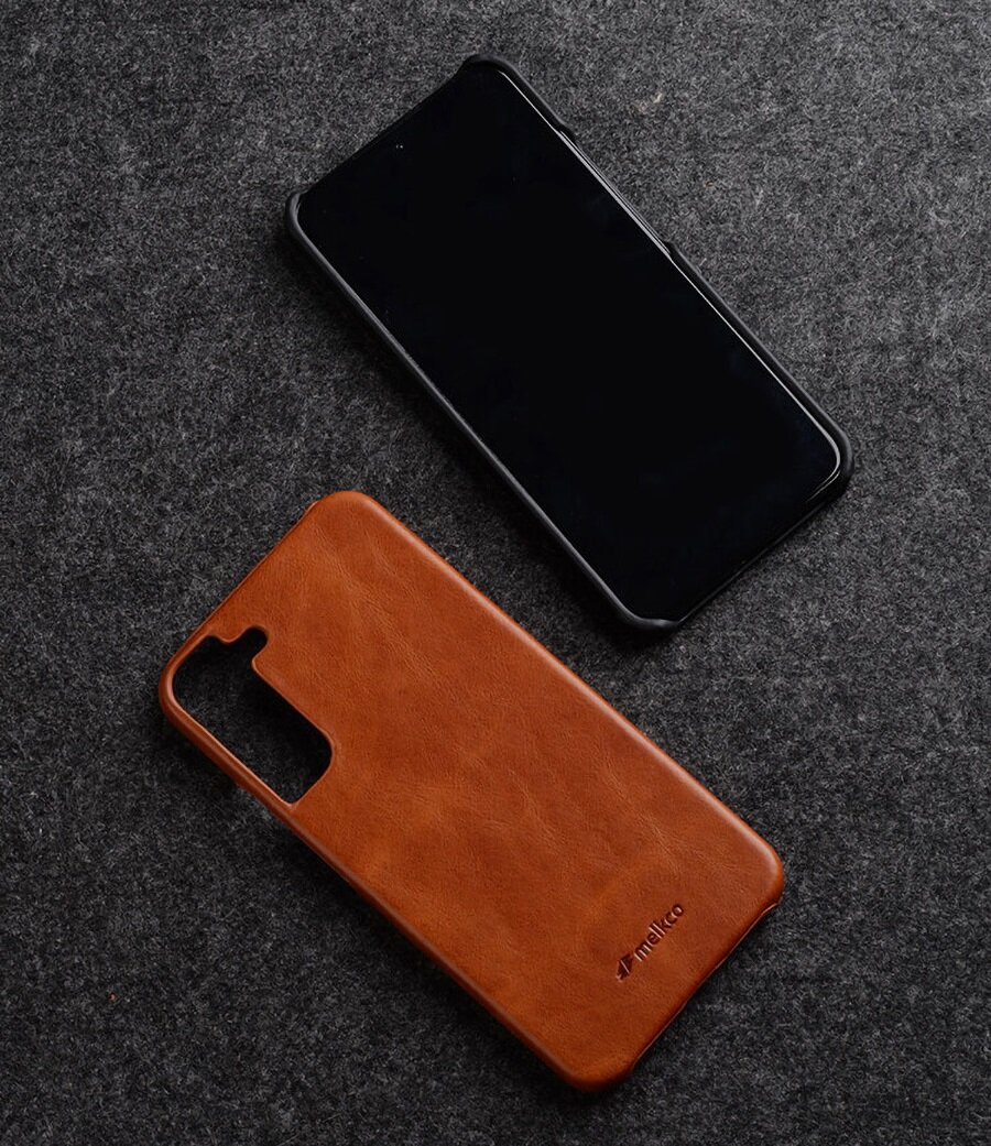 Кожаный чехол накладка Melkco для Samsung Galaxy S22 Ultra - Snap Cover, коричневый