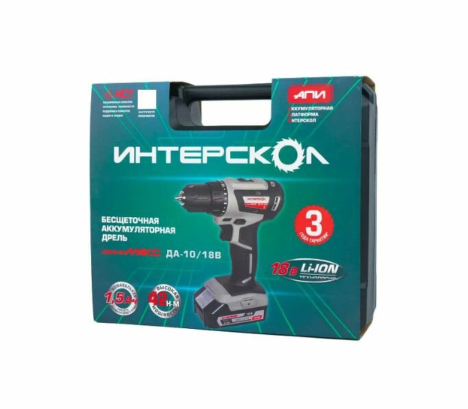 Дрель-шуруповерт аккумулятороная Интерскол ДА-10/18В 42 минимакс Li-ion АПИ (кейс, 2 аккум. 1,5Ач, ЗУ)