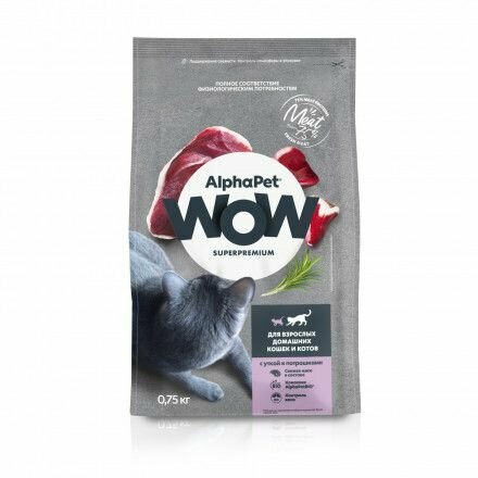 Корм сухой Alphapet WOW Superpremium с говядиной и печенью для взрослых домашних кошек и котов, 750 г