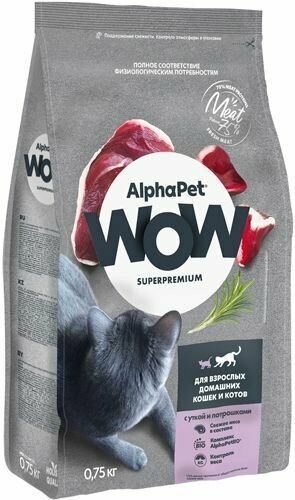 Сухой корм для домашних кошек и котов AlphaPet WOW Superpremium с уткой и потрошками, 0,75 кг