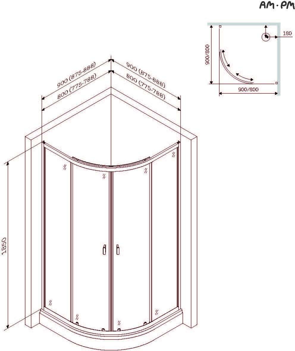 Душевой уголок AM.PM X-Joy Twin Slide, без поддона, 90 x 90 х 180 см