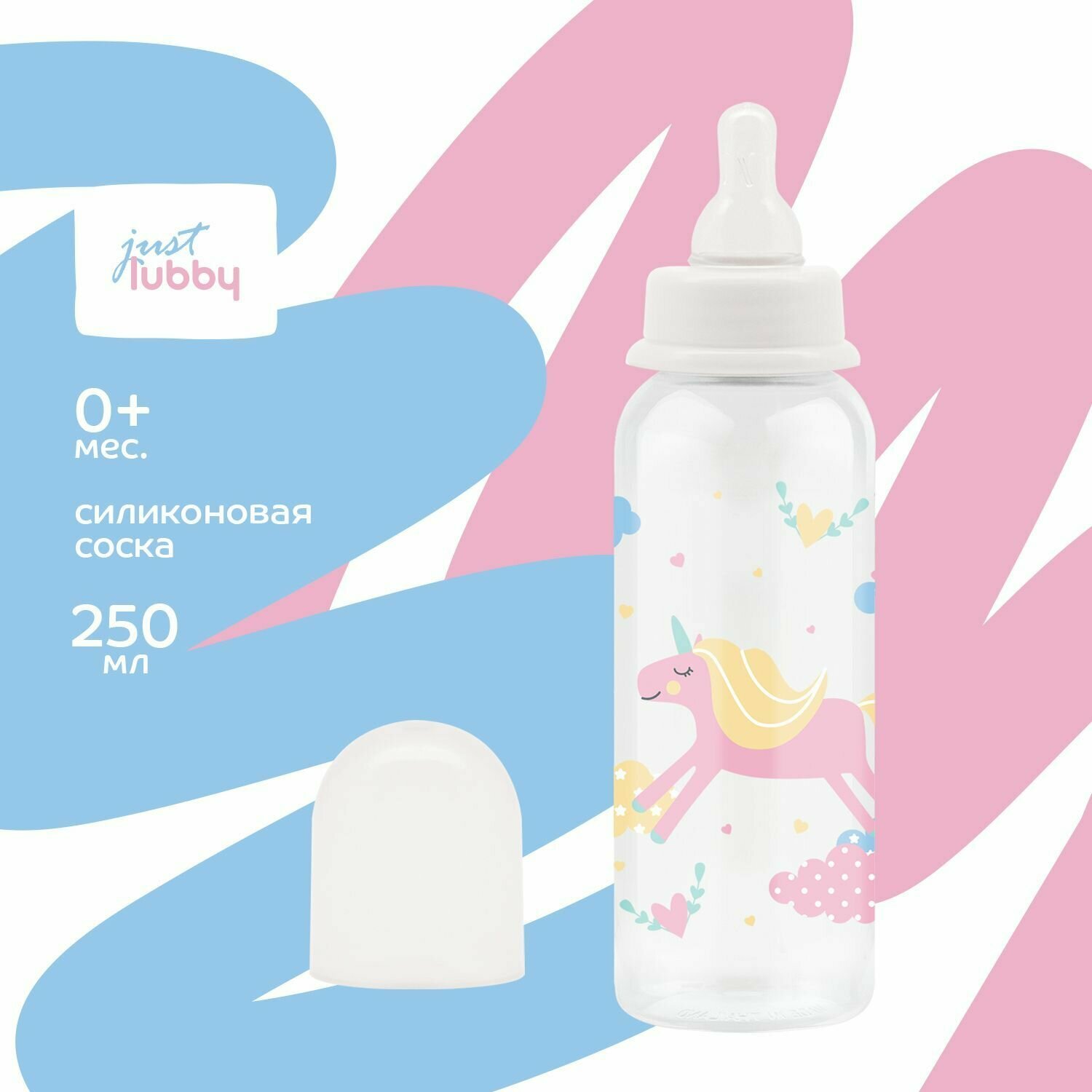 Бутылочка для кормления Just Lubby, с силиконовой соской, 250мл, в ассортименте