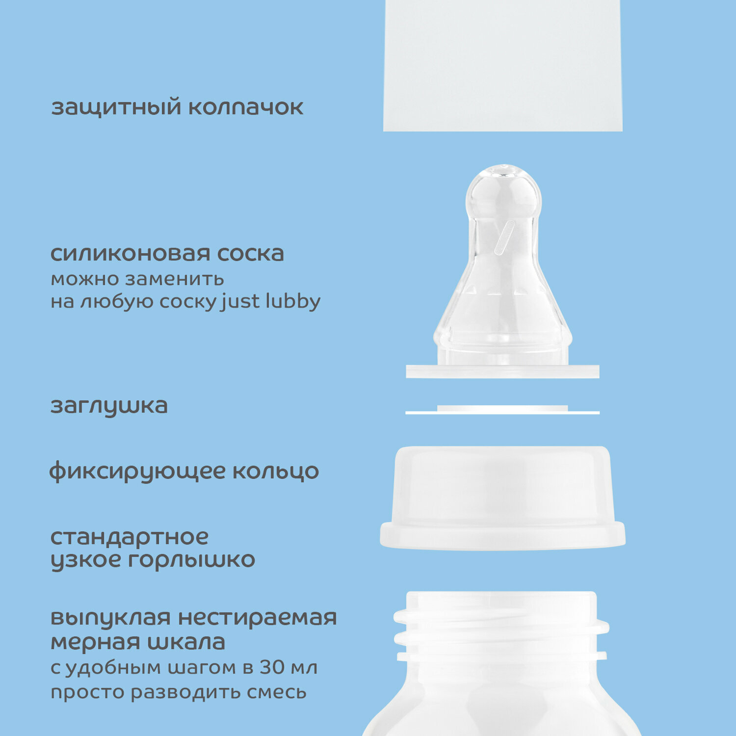 | Комплектация | бутылочка, заглушка, соска |