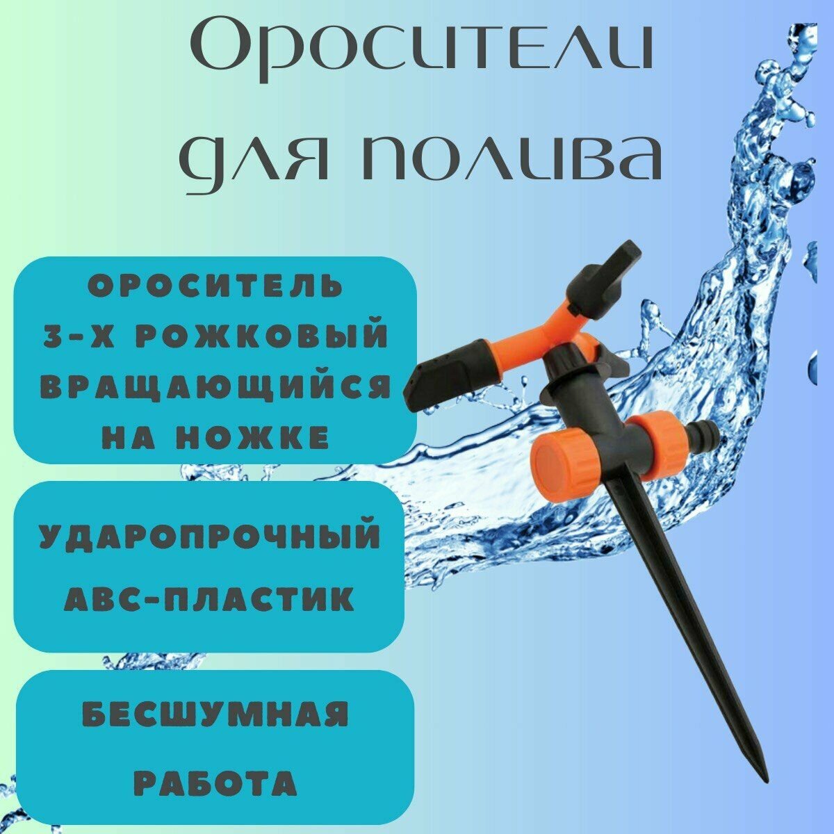 Ороситель AQUAPULSE, пластиковый вращающийся на ножке 3-х рожковый, для полива огородов, клумб, газонов, АР3024