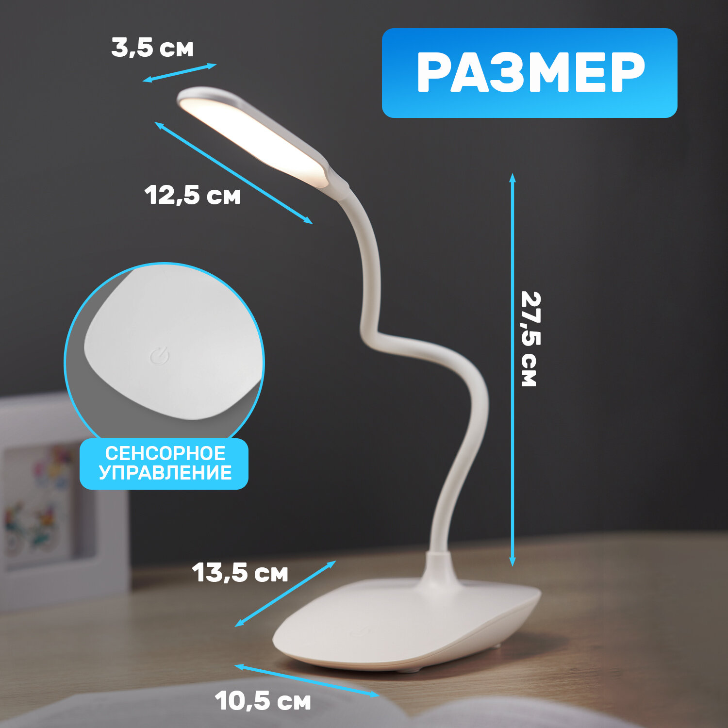 Лампа настольная беспроводная, настольный светильник REXANT