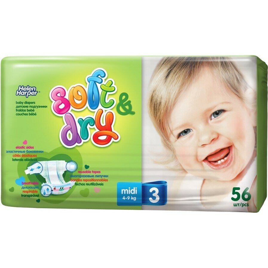 Подгузники Helen Harper Soft&Dry, Midi 3 (6-10 кг), 56 шт 1128628