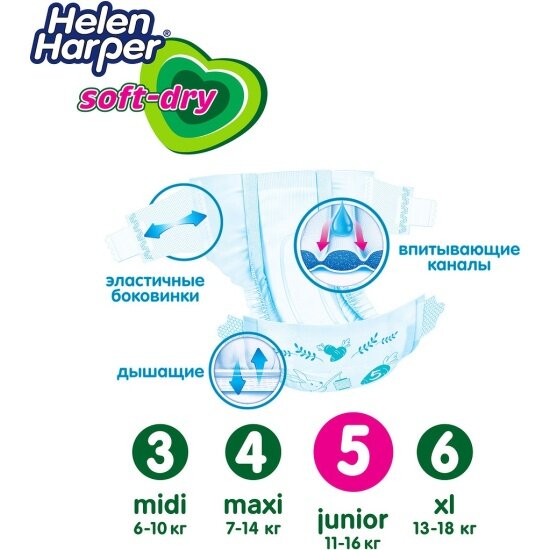 Helen Harper Подгузники Soft & Dry junior (11-16 кг) 60 шт. интересное: