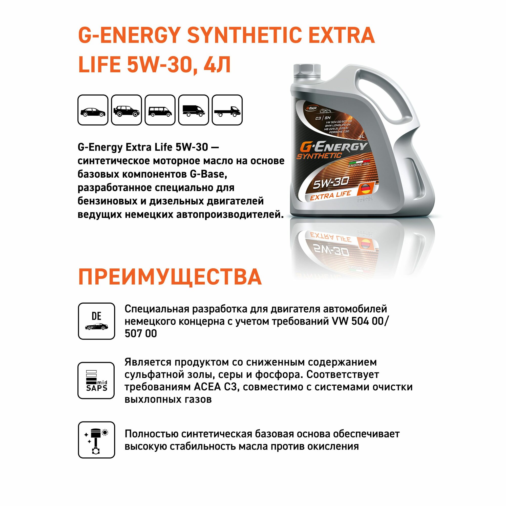 G-ENERGY 253140431 G-ENERGY SYNTHETIC EXTRA LIFE 5W-30 4Л