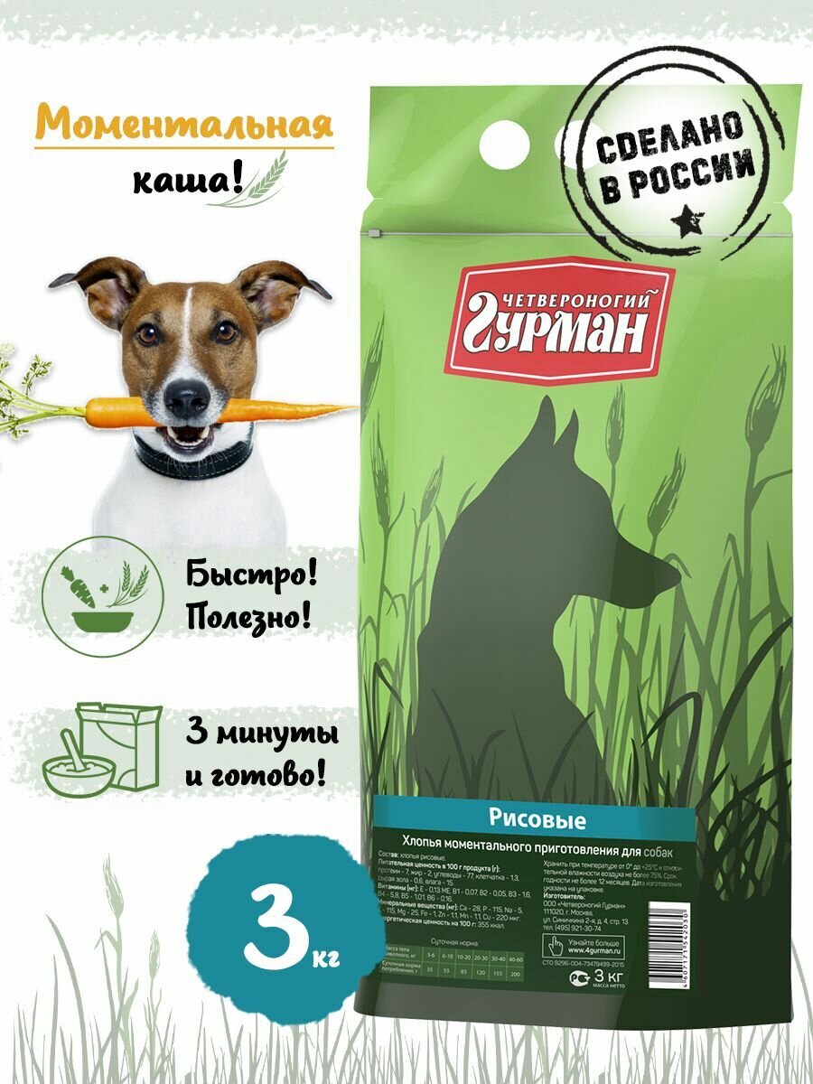 Купить Каша для собак Четвероногий Гурман, рисовые хлопья моментального приготовления, 3 кг