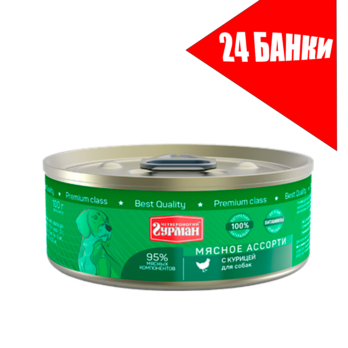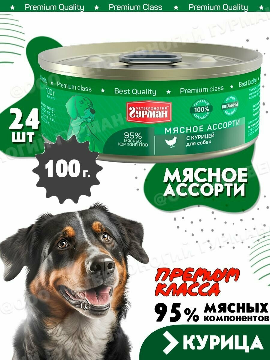 Купить Четвероногий Гурман для собак Мясное ассорти с Курицей,консервы 100г (24 банки)