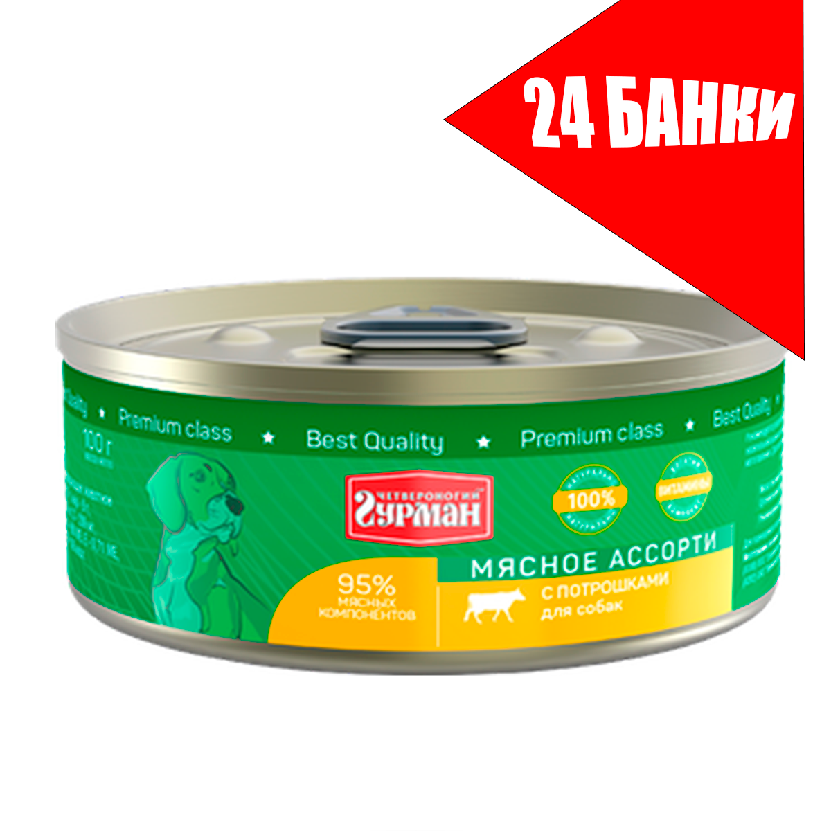 Купить Четвероногий Гурман для собак Мясное ассорти с Потрошками, консервы 100г (24 банки)