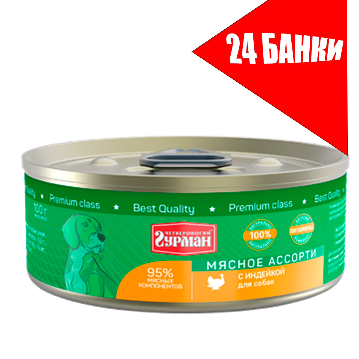 Купить Четвероногий Гурман для собак Мясное ассорти с Индейкой, консервы 100г (24 банки)