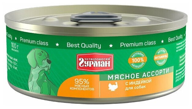 Четвероногий Гурман Консервы для собак "Мясное ассорти" с индейкой, 100г 0.1 кг