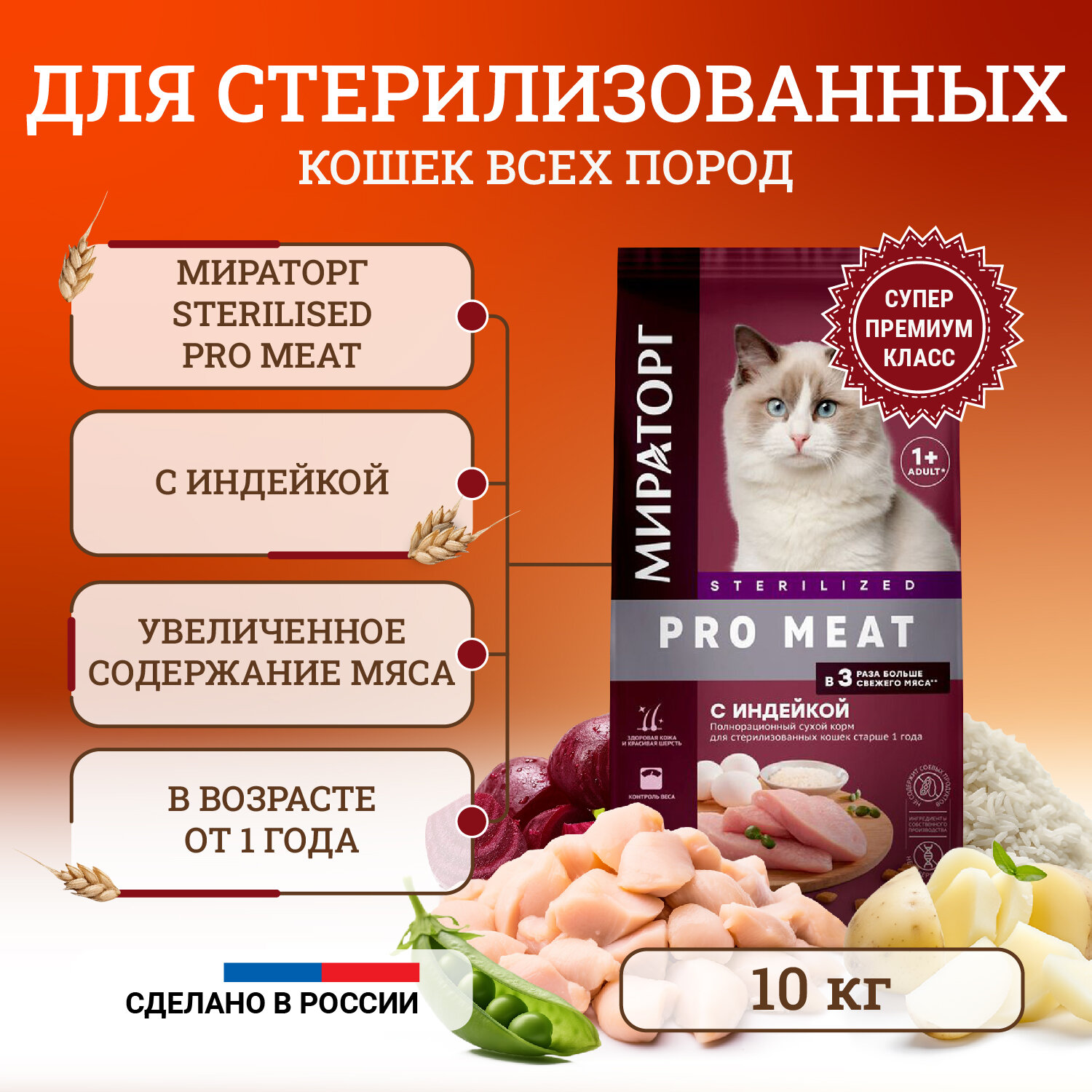 Корм для кошек мираторг Pro Meat для стерилизованных, индейка сух. 10кг