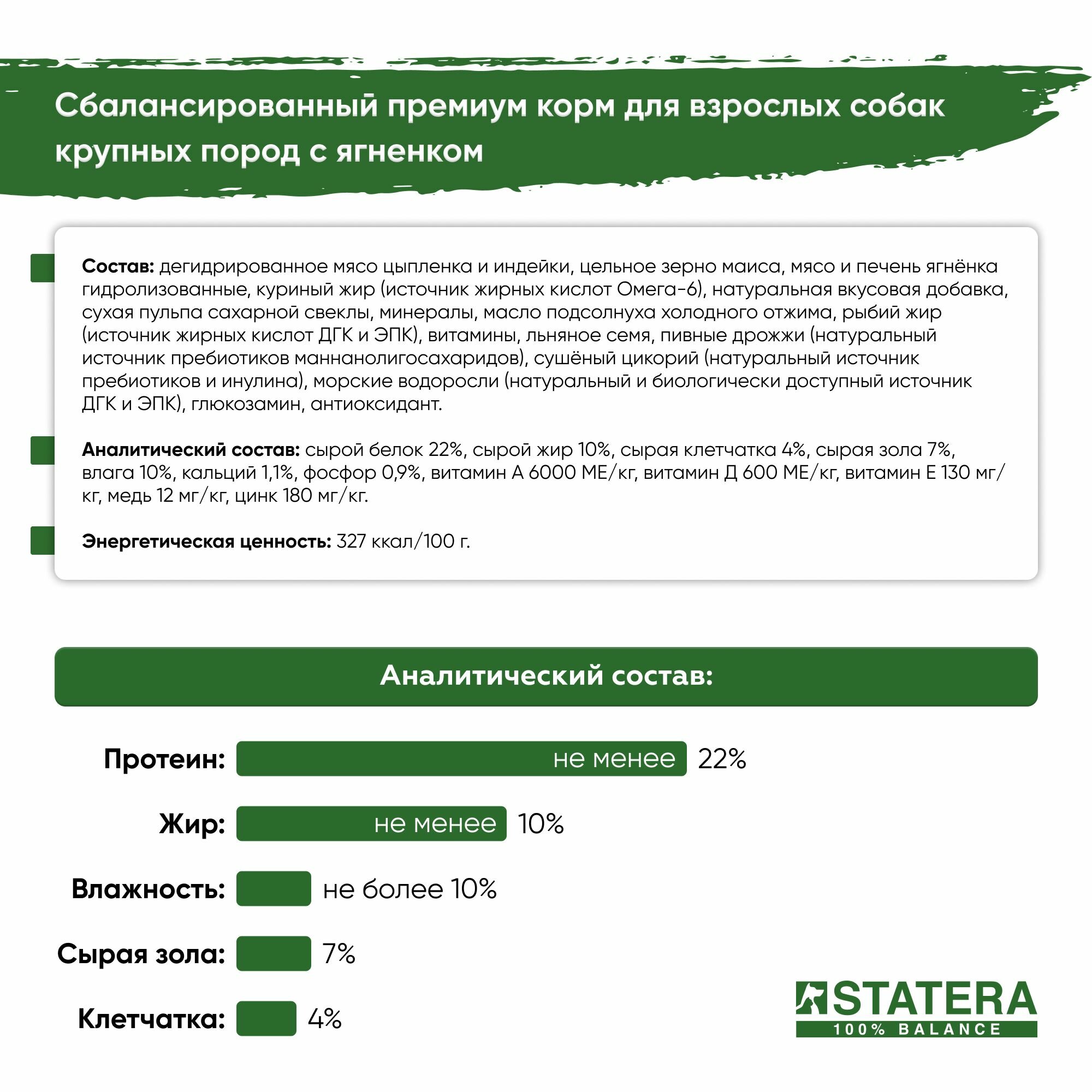 Сухой Премиум корм для собак крупных пород STATERA с ягненком 18кг / Cтатера