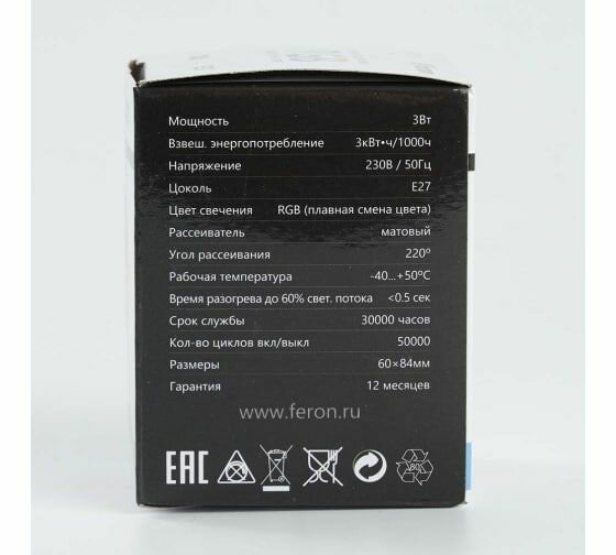 Лампа светодиодная Feron E27 3W RGB матовая LB-371 38115, цвет Белый/, материал /