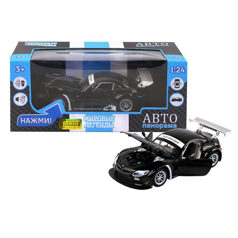 Модель машины Автопанорама 1:24, BMW Z4 GT3, черный, свободный ход колес, открываются двери, капот, свет, звук