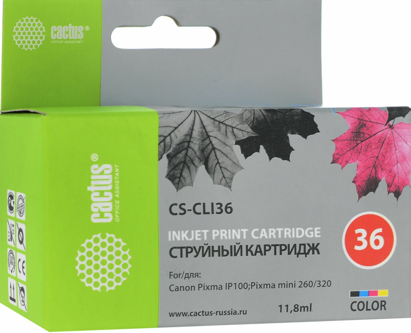 Картридж струйный CACTUS (CS-CLI36) для CANON PIXMA iP100, цветной, ресурс 250 стр.