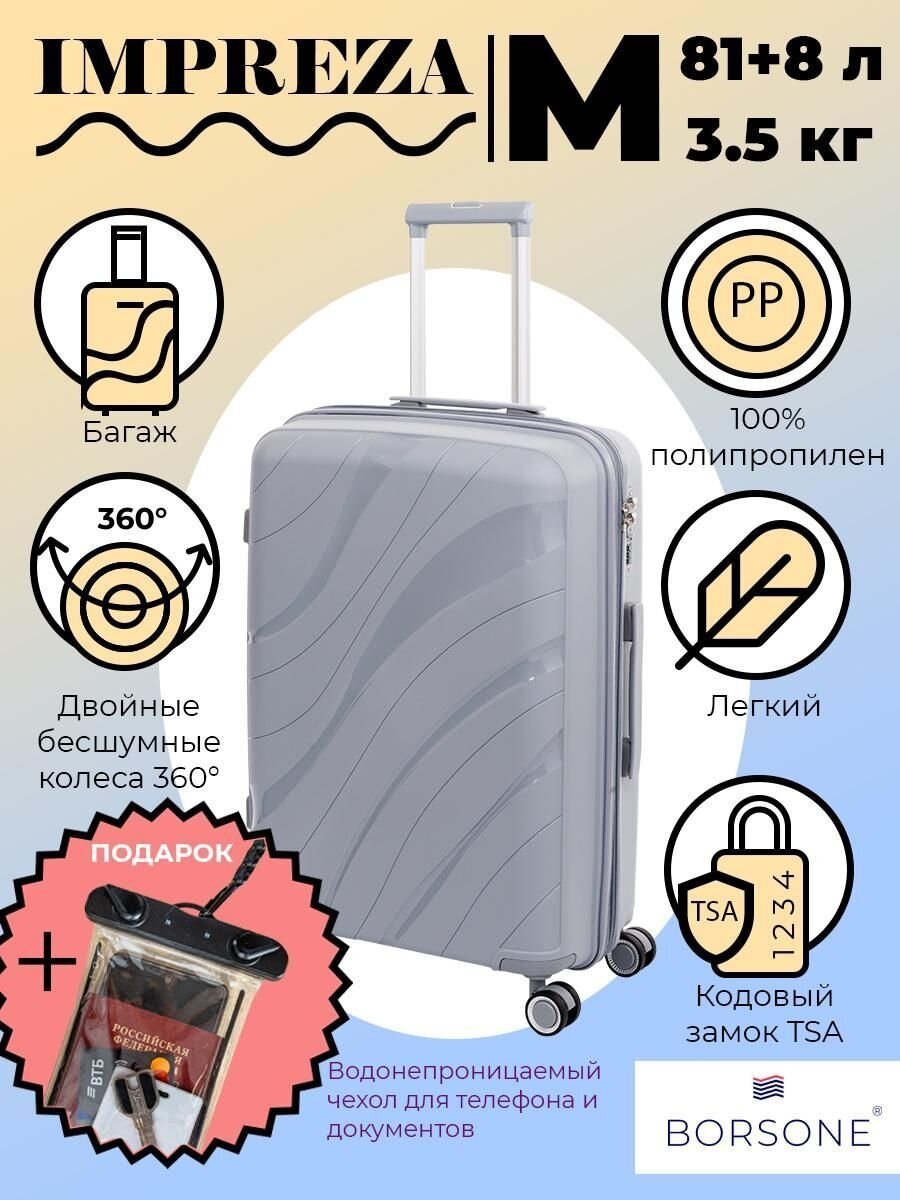 Чемодан из полипропилена на 4-х колесах М / Багаж / 89 Л / Легкий прочный чемодан полипропилен