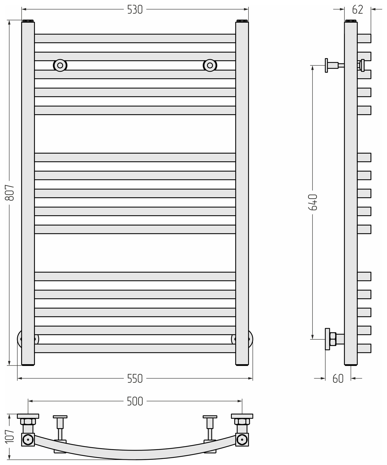 Полотенцесушители сунержа Полотенцесушитель Аркус диагональное/нижнее/вертикальное цвет-сталь (00-0251-8050)