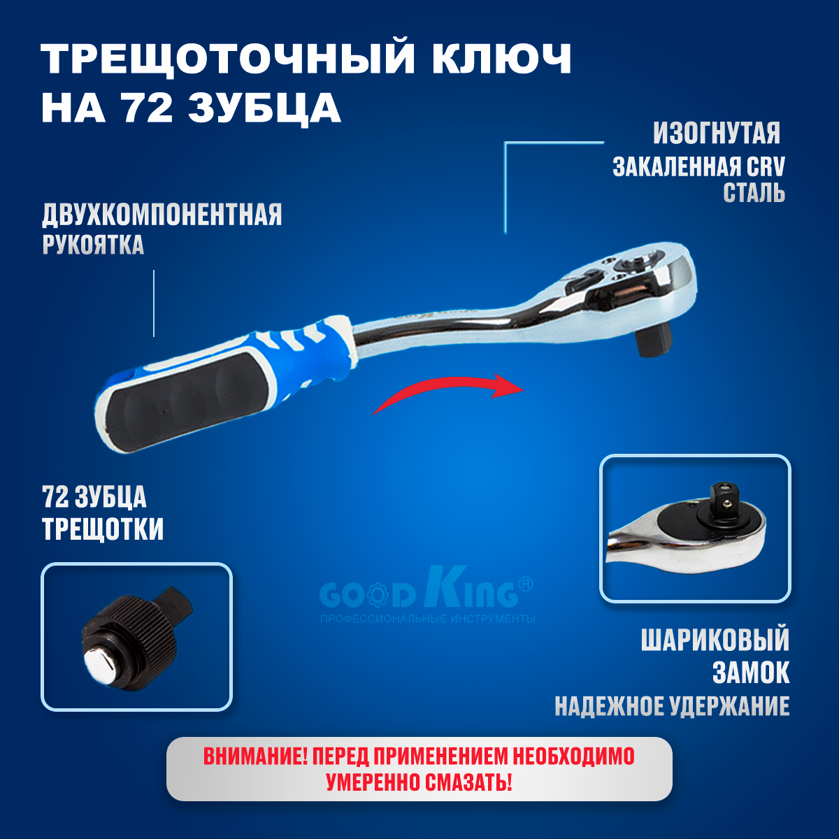 Набор инструментов 94 предмета 1/4" 1/2" трещотка 72 зуба GOODKING B-10094 торцевые головки, биты, для авто, для дома