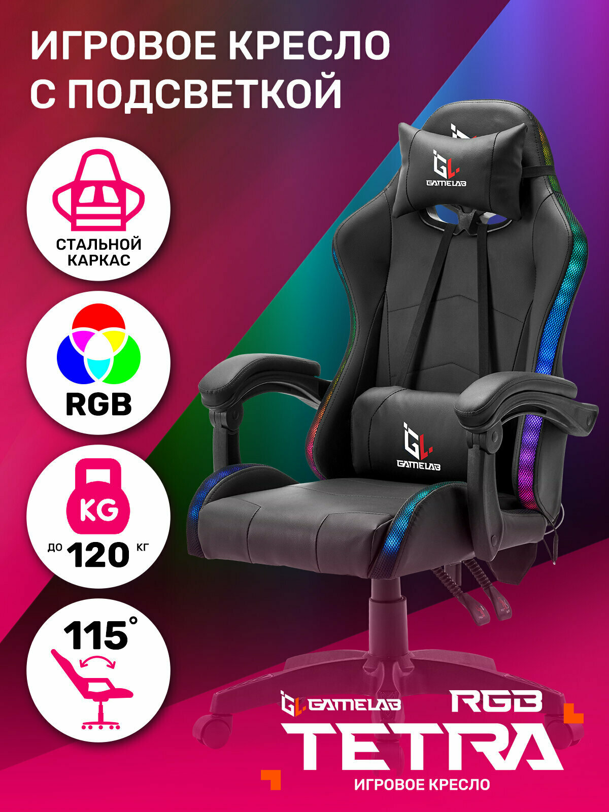 Кресло компьютерное игровое GameLab Tetra RGB черный