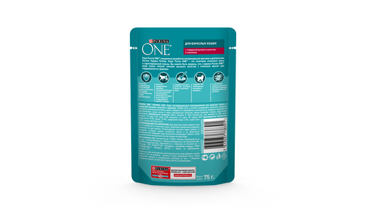 Купить Корм влажный для взрослых кошек PURINA ONE Adult с говядиной и морковью в соусе, 75г