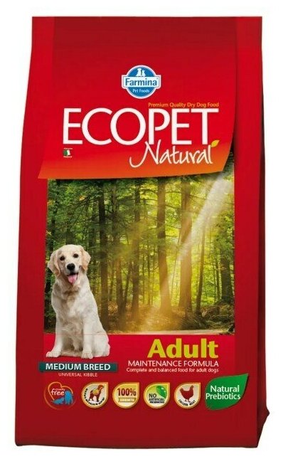 Сухой корм для взрослых собак средних пород Farmina Ecopet Natural Adult Medium с курицей 12 кг.